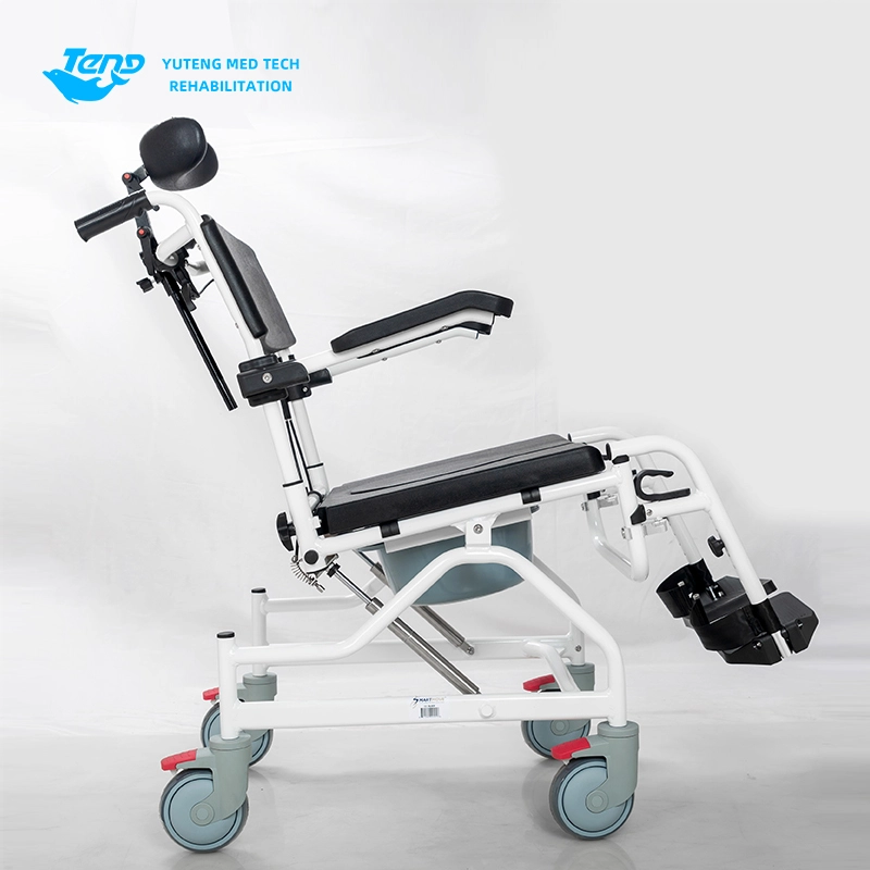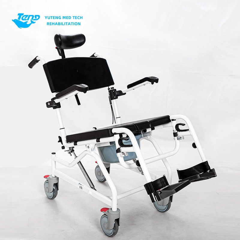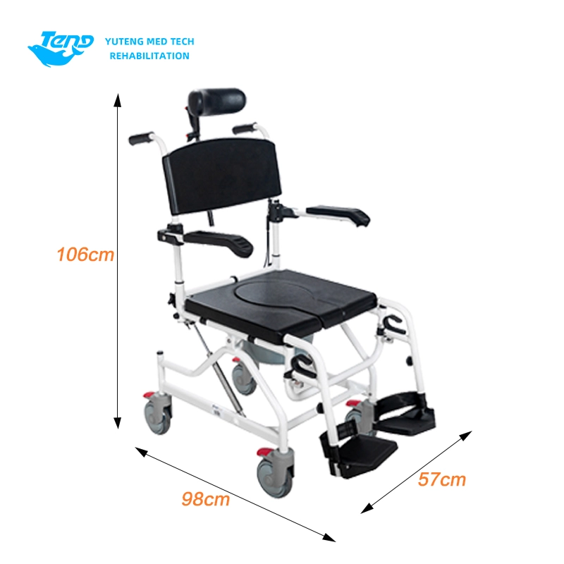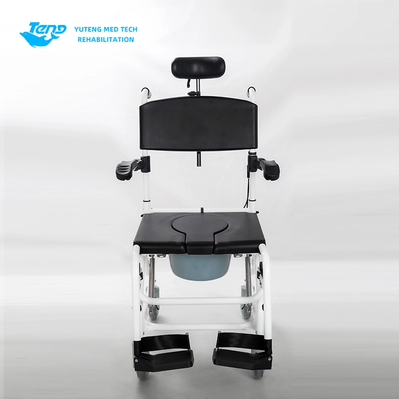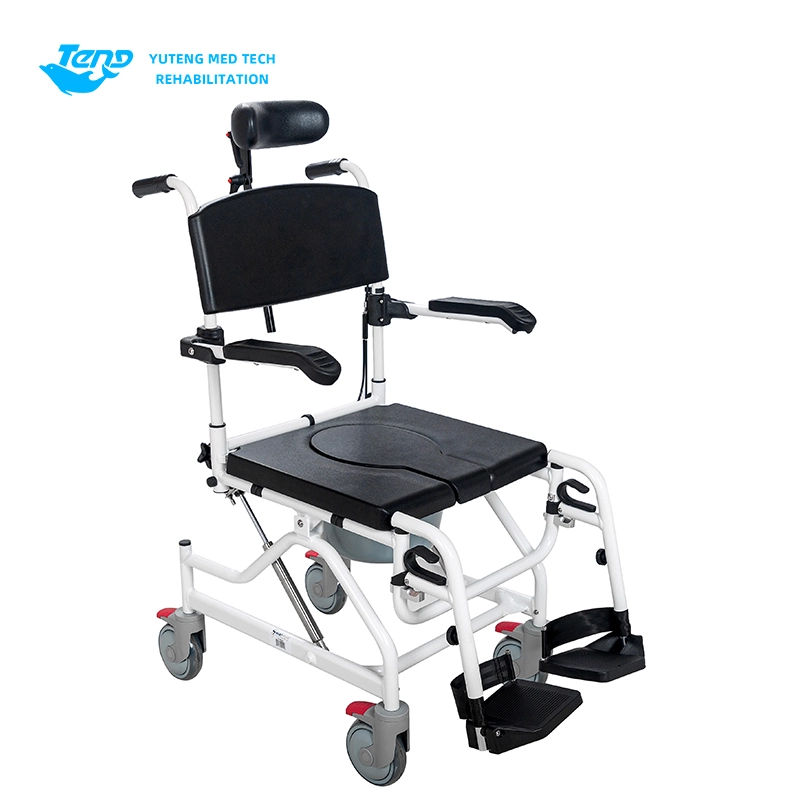 Yuteng Medical Products Movable Commode Fotela, to wielofunkcyjne krzesło toaletowe, odpowiednie do starzenia się produktów toaletowych. Sprysp aluminiowa rama; Projekt demontażu bez narzędzia; Stolessowa regulacja przechylania tylnego; Dostosowanie pracy hydraulicznej; Uniwersalne ciche gumowe koło; Krutkanę szyi można regulować w górę iw dół.